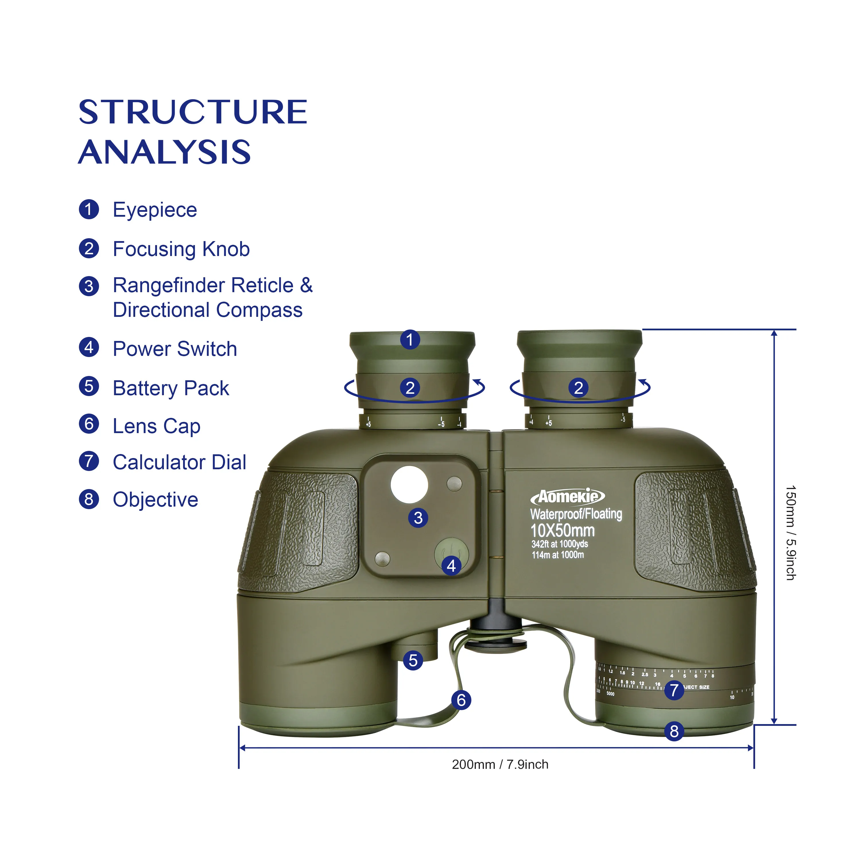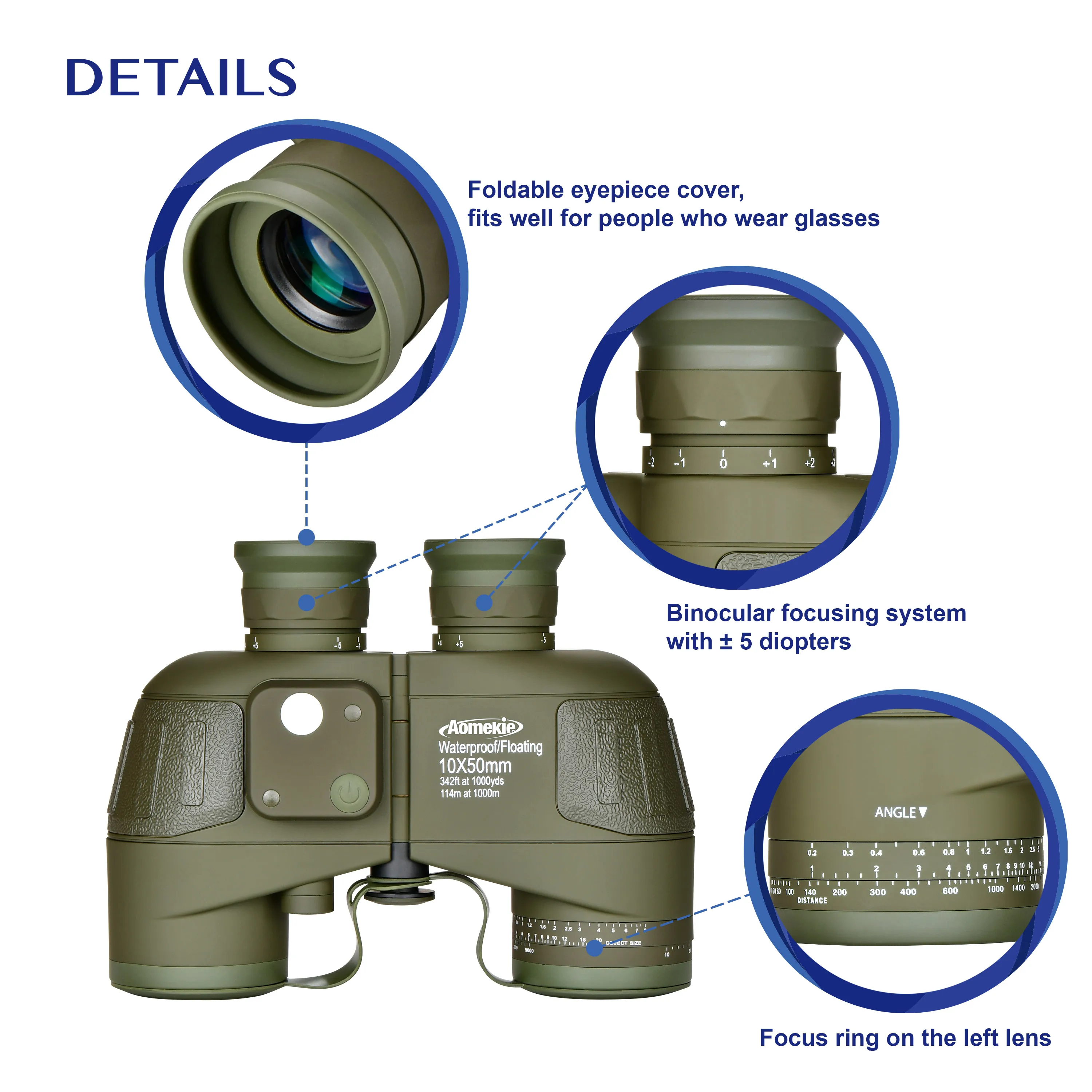 10X50 HD Marine Binoculars with Rangefinder Compass BAK4 Prism 50mm FMC Lens Waterproof for Outdoor Hunting Boating Camping Shopifynow