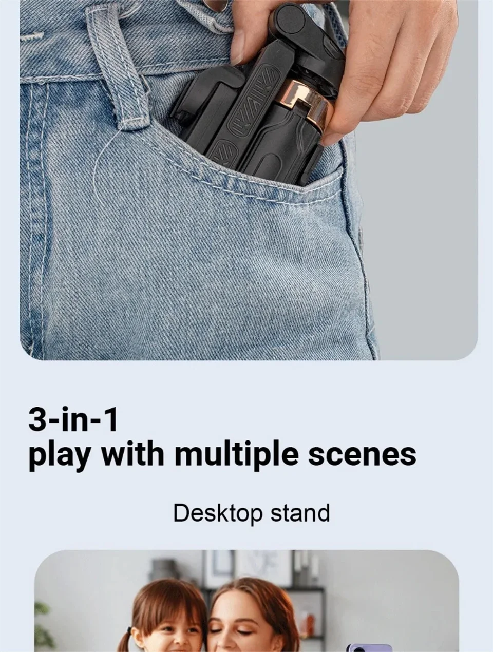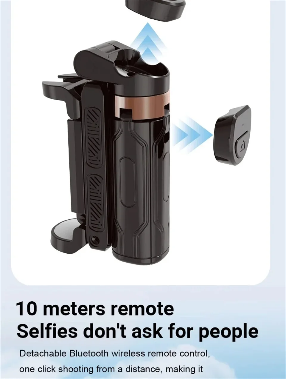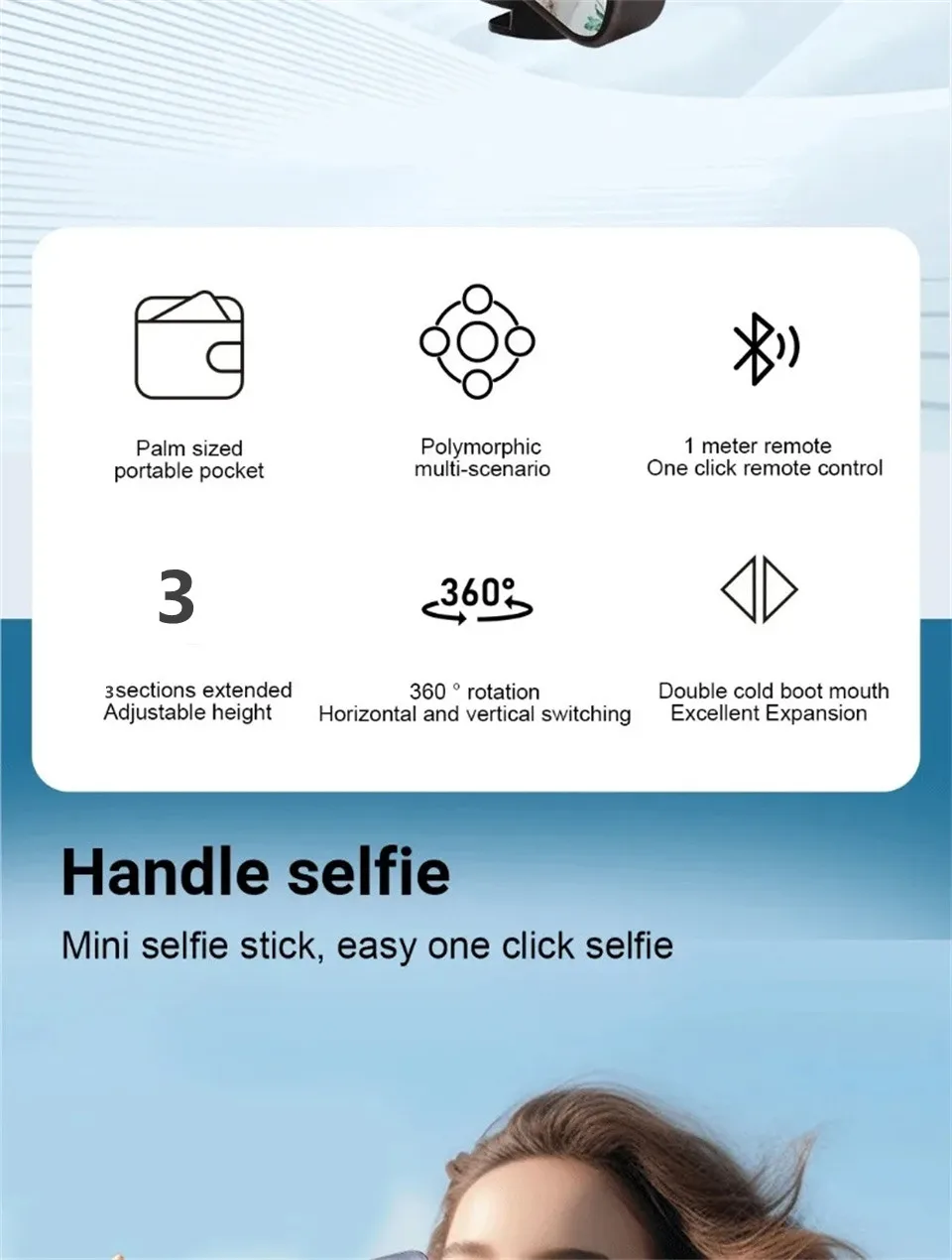 1 This mini Bluetooth selfie stick phone holder features 360degree rotation for capturing every angle of your perfect shot