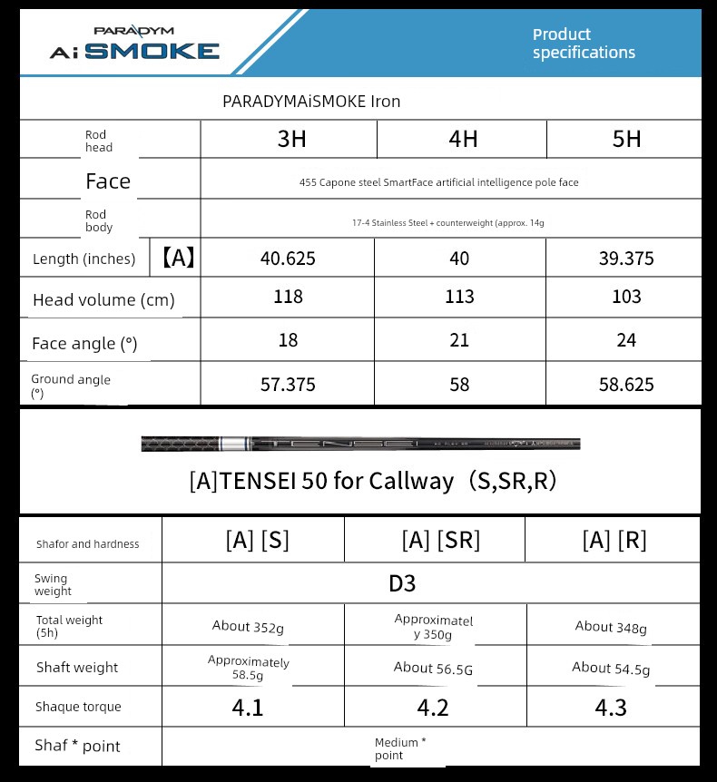 24 New Arrival Callaway Caraway Golf Club Rod Set Male AI Smoke Wooden Pole Matching Apex Iron Pole
