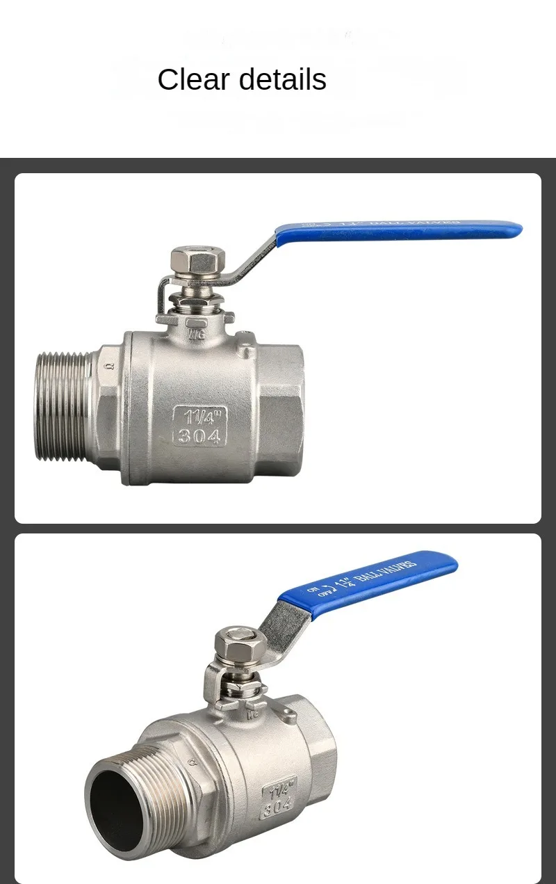 316 Stainless Steel 2P Ball Valve 1/2" 3/4" 1" 1-1/4" 1-1/2" 2" NPT Female And Male Thread Water Gas Oil Switch Fitting Adapter