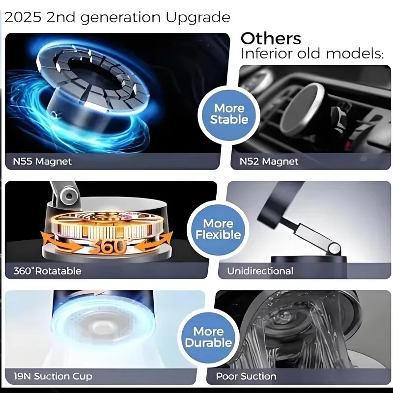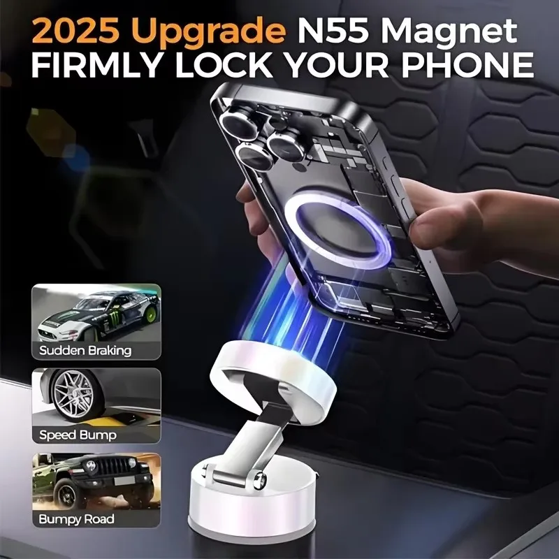 360° Rotatable Vacuum Magnetic Phone Holder Ultra-Strong Magnet Foldable Universal Car Holder for iPhone 16 15 14 13 12 Pro Max Shopifynow