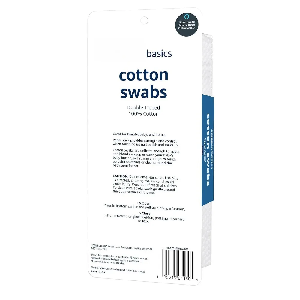 Basics Cotton Swabs for Personal Hygiene and Baby Care, 2000 Count, 4 Pack of 500 Count
