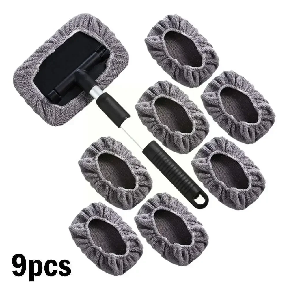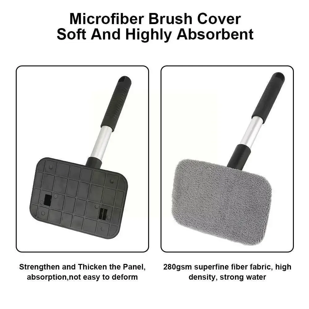 Car Window Cleaner Brush Windshield Cleaner Microfiber Cloth Cleaning Tool with Handle Interior Exterior Auto Glass Wiper