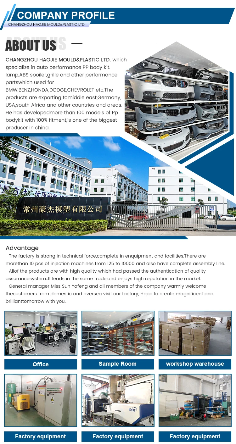 1.How can we guarantee quality? Always a pre-production sample before mass production; Always final Inspection before shipment; 2.What can you buy from us? Body Kit, Car Bumpers, Car Styling Kits, Bonnet Hood, Roof Rack 3.Why should you buy from us not from other suppliers? We specialize in manufacturing high-quality automotive parts and modification components, backed by years of rich experience in design and development. Our comprehensive service system ensures seamless support throughout your journey with us, while our strategically positioned overseas warehouses enable swift delivery of products right to your doorstep. 4.What services can we provide? Accepted Delivery Terms: FOB,CFR,CIF,EXW,FCA,DDP,Express Delivery; Accepted Payment Currency:USD,EUR,AUD,HKD,CNY; Accepted Payment Type: T/T,PayPal,Western Union,Cash; Language Spoken:English,Chinese