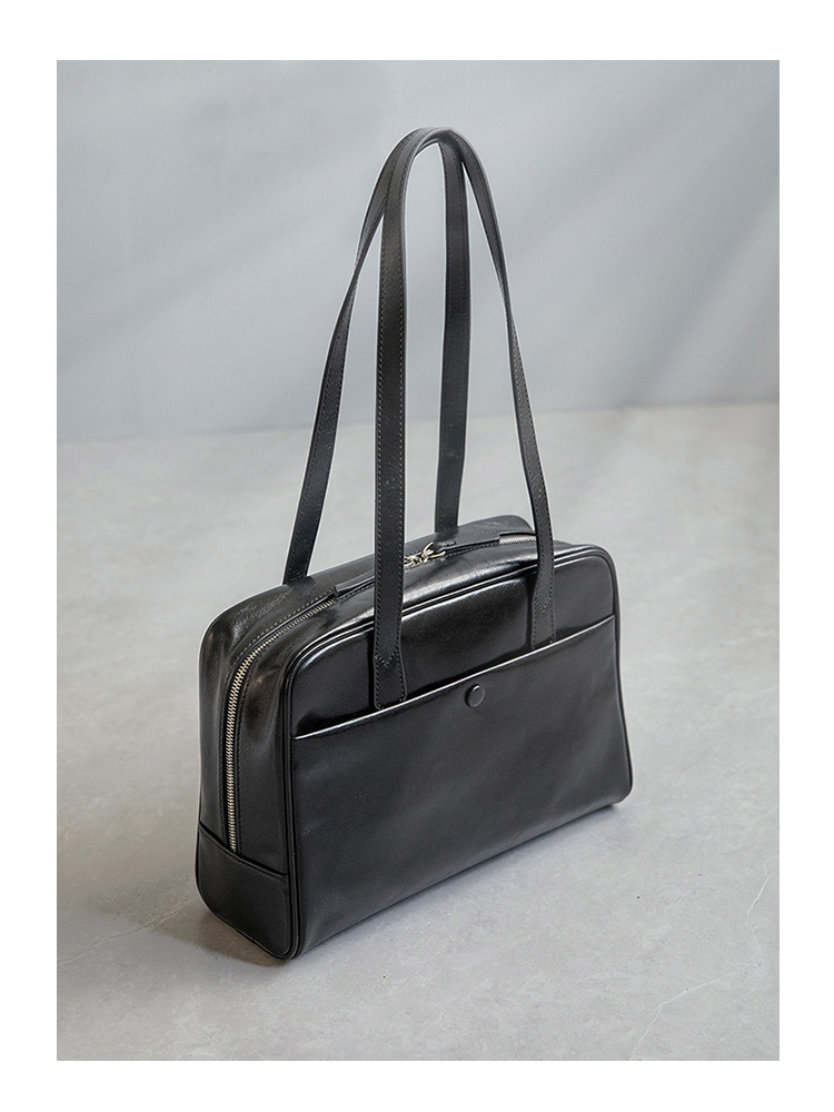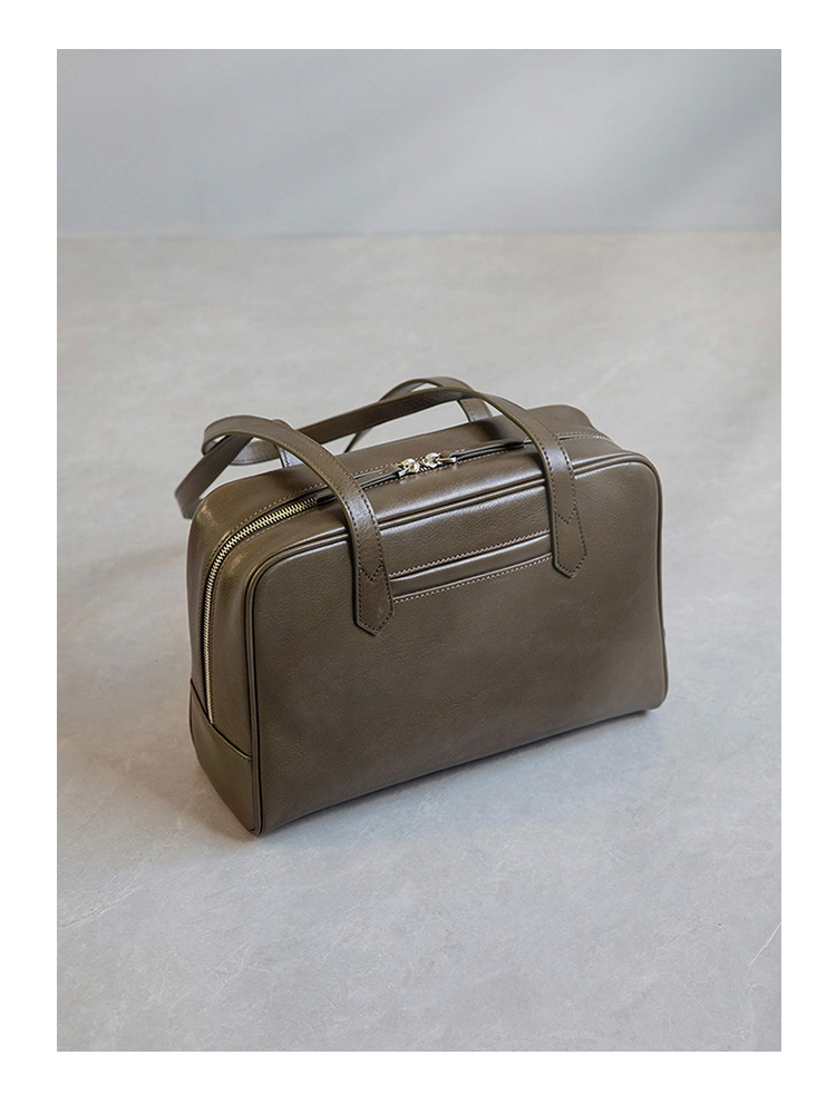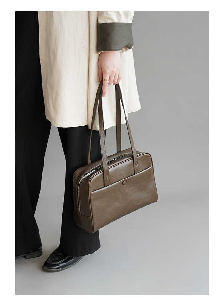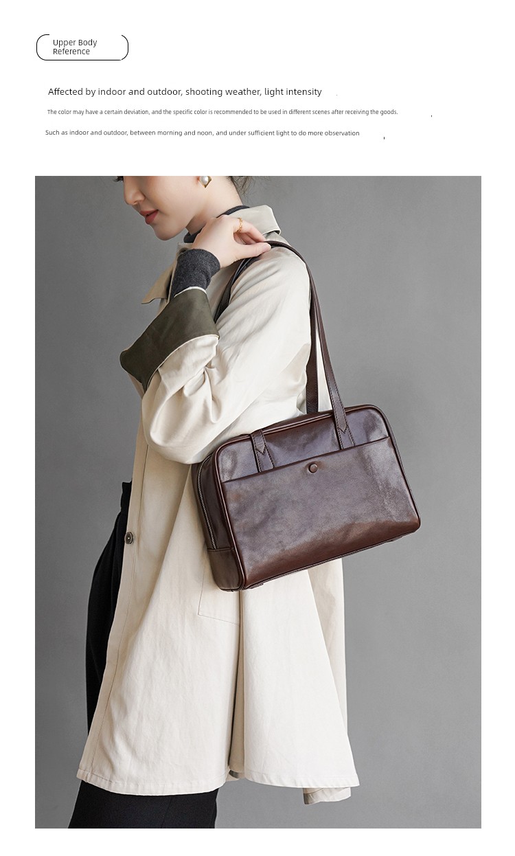 Fan Jia Leather Vegetable Tanned Full-Grain Leather Cowhide Leather Women's 2025 New Arrival Boston Shoulder Work Clothing Bowling Bag