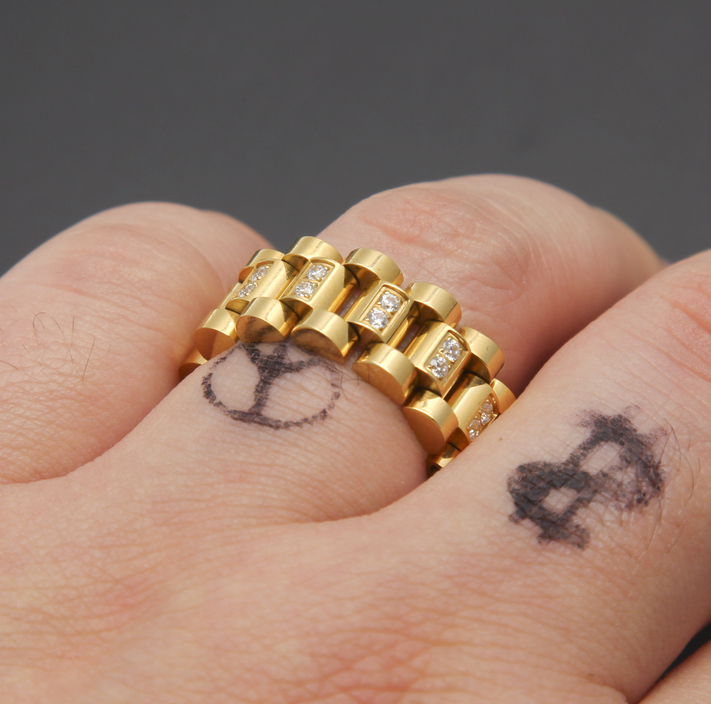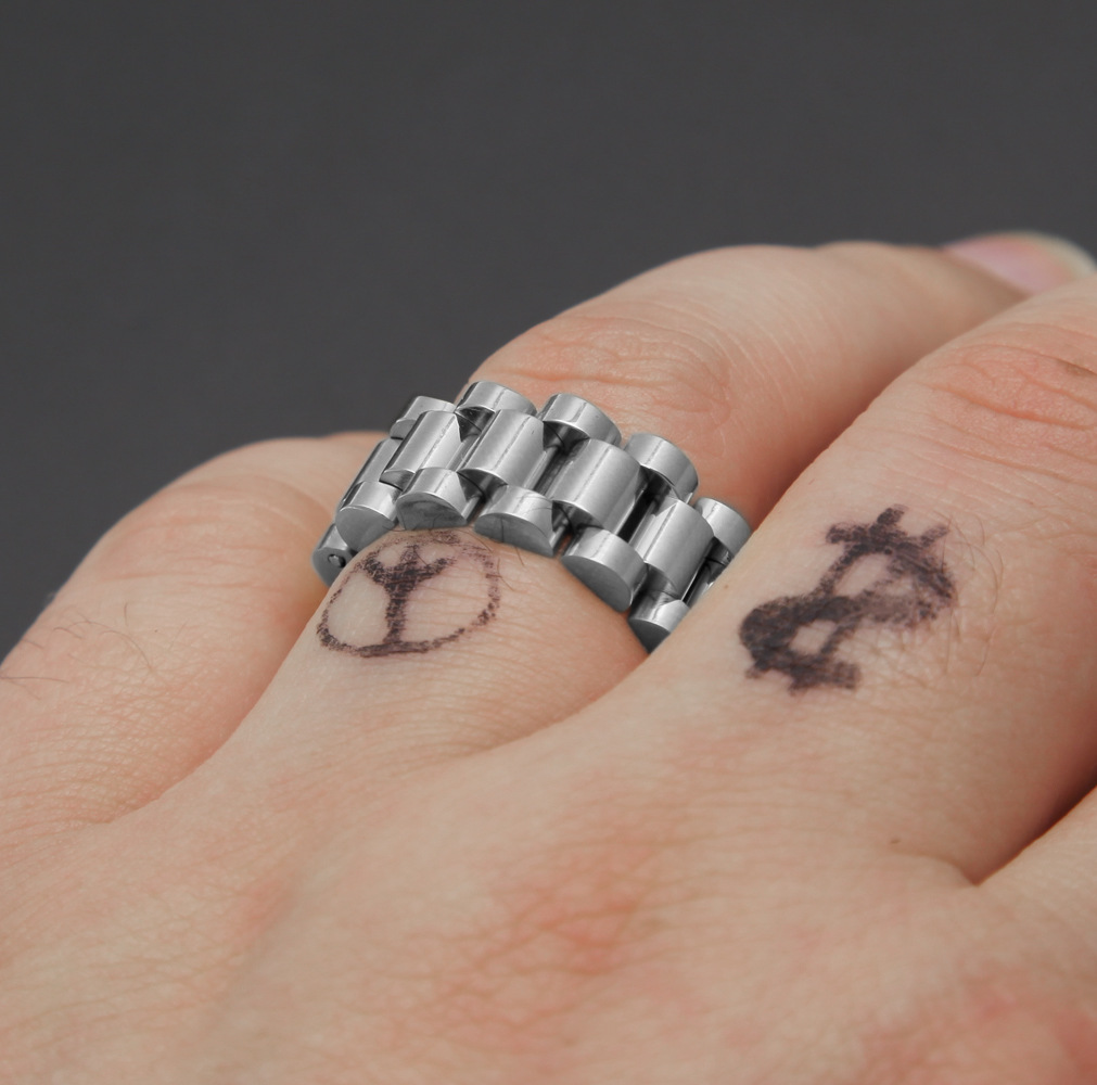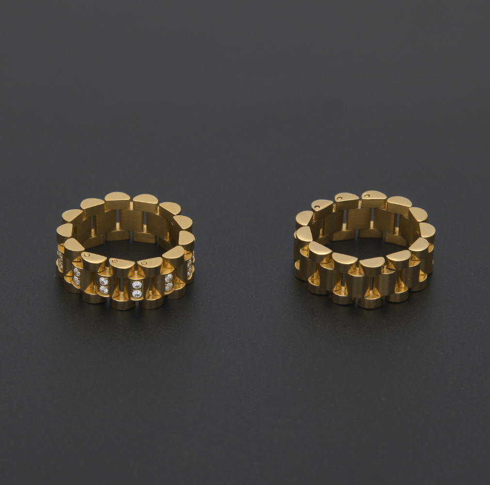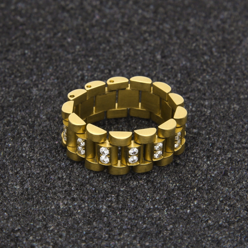 INS Street Hip-Hop Misae Same Style Stylish Minimalist Retro Titanium Steel Watch Tank Chain 18K Domineering Ring Men's Fashion