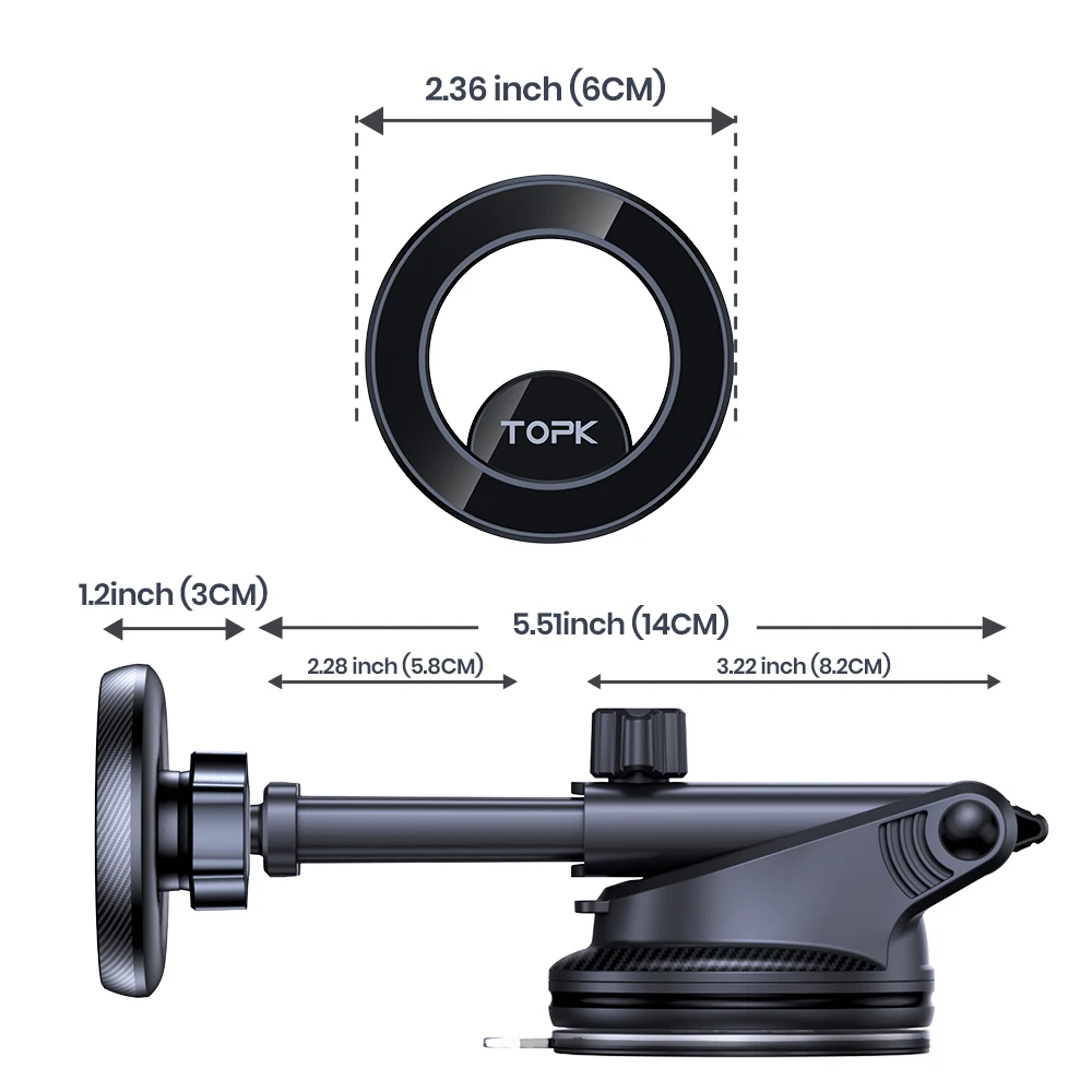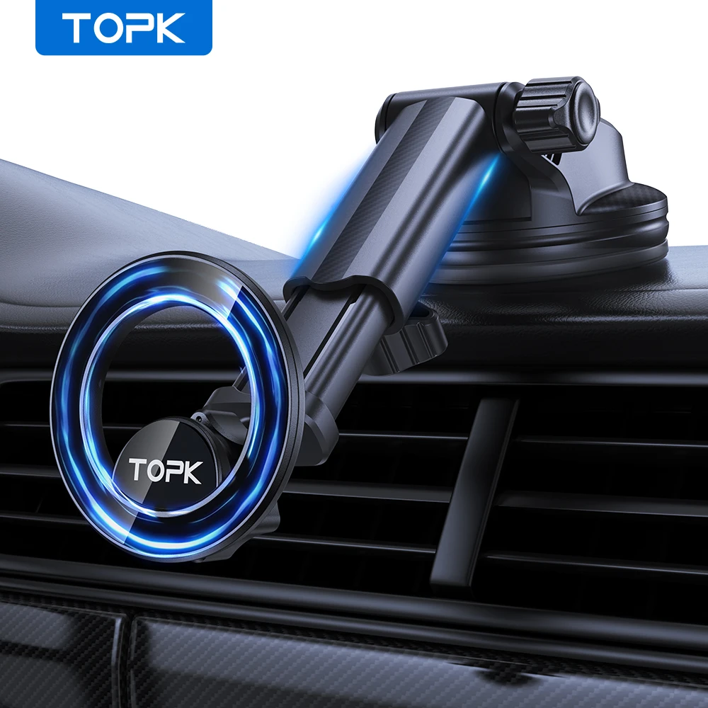 TOPK for MagSafe Car Phone holder Magnetic Car Phone Mount for Car Retractable Arm Dashboard Windshield for Magsafe & All Phone